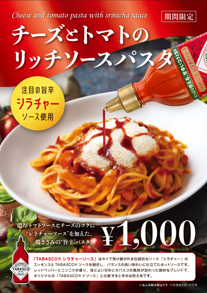 定番のトマトソースとチーズをベースに、ネクストブレイク調味料として注目されているシラチャーソースをアクセントにプラス。